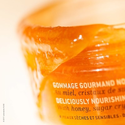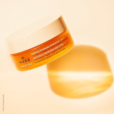 Este exfoliante corporal, con Miel, Cristales de Azúcar y Aceites Preciosos es un verdadero tratamiento 2 en 1: exfolia y nutre la piel. La textura de la piel se afina y , la piel queda nutrida y visiblemente más hermosa.